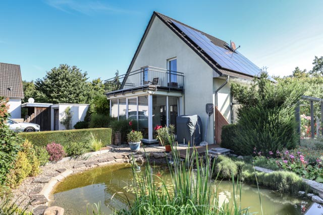 In einer grünen Oase in der Kleinstadt Vechelde, mit ca 18.000 Einwohner-Tendenz steigend, befindet sich dieses im Jahr 2006 erbaute Haus. Nicht nur die Ortsrandlage des Objektes sondern die guten Anbindungen (Bundesstrassen sowie öffentliche Verkehrsmittel), zu den nahe gelegenen Städten: Braunschweig, Peine, Salzgitter und Wolfenbüttel spricht die Ruhesuchenden jeder Altersgruppe an. Die Lage ist hier entscheidend. Auch viele Annehmlichkeiten für die junge Familie sind hier gegeben: Kindergarten, Grundschule, Real- oder Gymnasialschule alles ist hier vor Ort. Das Haus ist mit seinem herrlich angelegten Garten, Nutzgarten und Terrassen (teilweise überdacht), dem Wintergarten die reine Erholung. Eine Garage und ein KFZ-Stellplatz befinden sich auf dem Grundstück, ebenfalls wurde ein praktisches Abstellhaus für Fahrräder, Gartengeräte und vieles mehr, geschickt an die Garage gesetzt. Das Haus hat eine Wohnfläche von ca. 110 m², die sich über zwei Etagen erstreckt. Im Erdgeschoss befinden sich ein Vorrats- / Wirtschaftsraum mit der Heizungsanlage und der Photovoltaikanlage, die geräumige Küche mit Austritt in den Wintergarten und in den Garten. Das Wohn-Esszimmer, im EG, ist sehr geräumig und von hier gelangen Sie ebenfalls in den Wintergarten oder auf die Terrasse. Im Wohnzimmer spendet ein Kaminofen gemütliche Wärme. Auch ein Gäste-Bad, mit Fenster, ist im EG. Das gesamte EG verfügt über eine Fussbodenheizung. Über den lichtdurchfluteten offenen und sehr geschmackvollen Treppenaufgang gelangen Sie in der 1. Etage. Hier befinden sich drei Zimmer und das große Badezimmer mit Fenster, einer Dusche und Wanne. Von zwei Zimmern ist ein Zugang auf die Balkonterrasse gegeben. Das Dachgeschoss ist ausgebaut und wird derzeit als Gäste- / Hobbyzimmer genutzt. Das Grundstück (ca. 558 m²) ist naturnah und doch sind es nur wenige Gehminuten in den Stadtkern. Es lohnt sich, dieses Objekt mit uns zu besichtigen. Kaufpreis EUR 495.000,--
